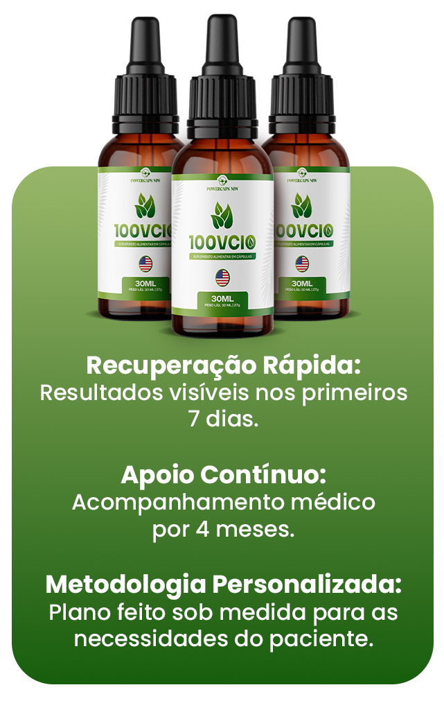 O 100VCIO, foi desenvolvido com a combinação perfeita de ingredientes 100% naturais, fazendo com que a pessoa que usar tenha o total aproveitamento dos componentes, agindo de forma imediata na corrente sanguínea e nas células neurais.